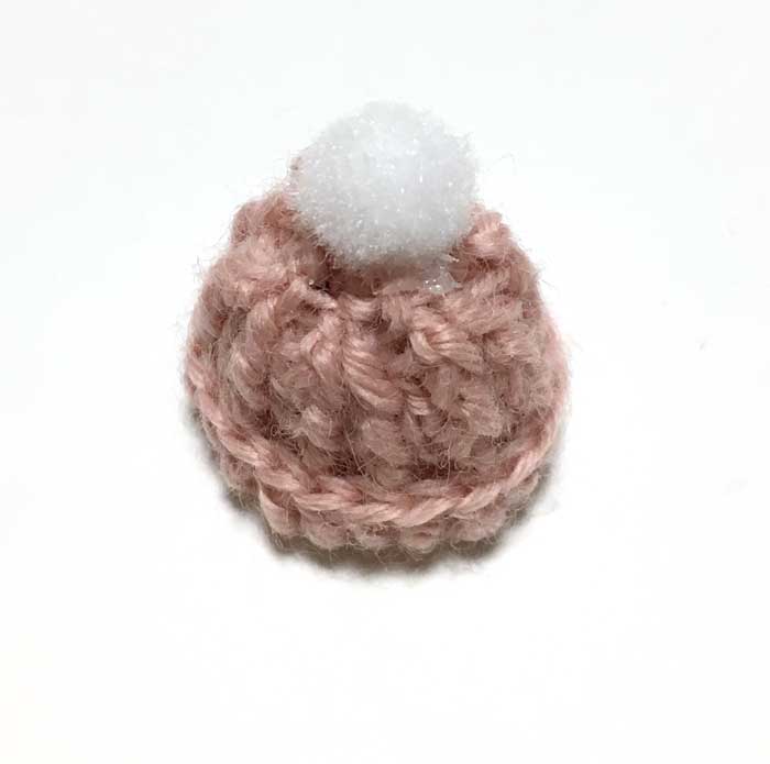 30mm×35mm (ポンポン含む) 極細毛糸をかぎ針で手編みしたニットの帽子です。 こちらはにっとも堂さんの作品です。